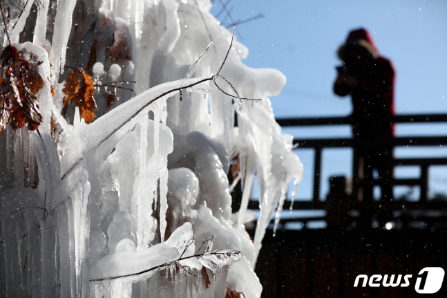 (°¸ª=´º½º1) ¼±Ù¿µ ±âÀÚ = °¿øµµ »êÁöÀÇ ±â¿ÂÀÌ ¿µÇϸ¦ ±â·ÏÇÑ 8ÀÏ ¿ÀÀü °¸ª½Ã ´ë°ü·É¹Ú¹°°ü ³» ³ª¹«¿¡ »Ñ¸° ¹°ÀÌ ¾ó¾îºÙ¾î ¸ÚÁø °æ°üÀ» ¿¬ÃâÇϰí ÀÖ´Ù. 2019.12.8/´º½º1